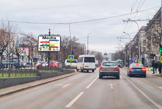 Светофор, перекрёсток. Направление бд. Бэнулеску Бодони, ул. Колумна, бд. Штефан чел Маре